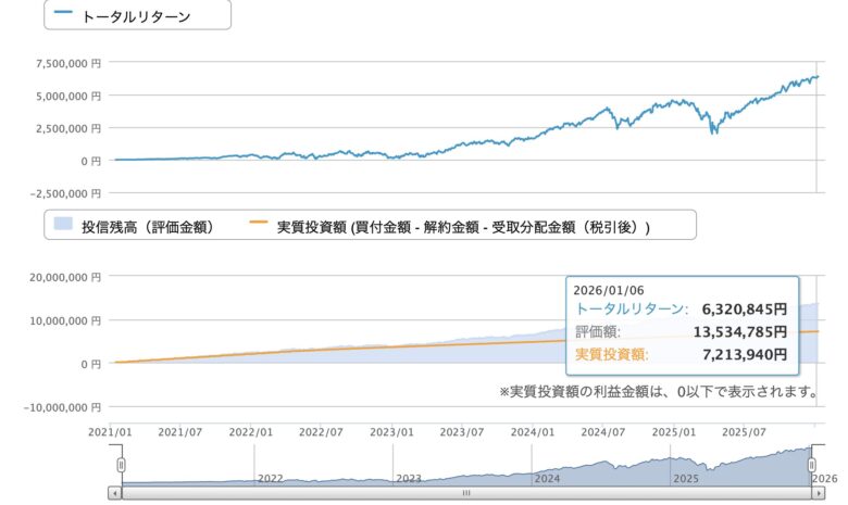 相場が良かったと言うのもありますが、マジで資産1,000万円を超えたあたりから資産の加速がすごいと実感しています。だって入金したのは120万円。入れたお金より勝手に増えるお金の方が大きい。これはもう完全にバグです。